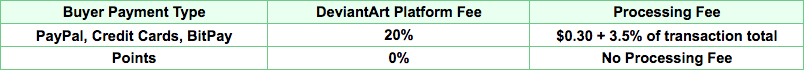 *DeviantArt platform fees do not include processing fees: $0.30 + 3.5% of transaction total.